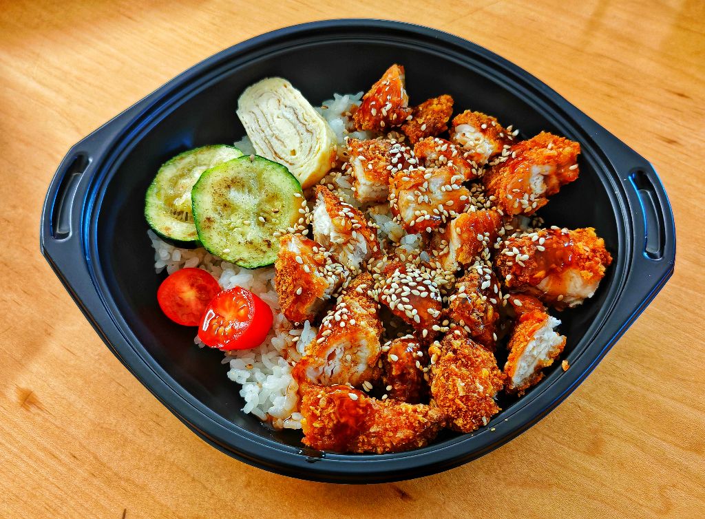 Pain moelleux, poulet pané, oignons, cornichons, ketchup, mayonnaise, moutarde